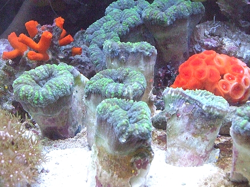 本日、ハナガタサンゴ蛍光グリーン、大きさ各種☆
