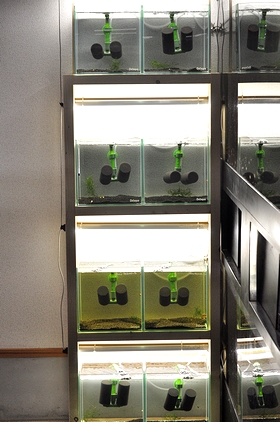 エビのブリード水槽を8本、新たに店の隅に増設