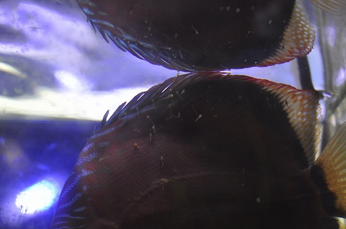 ペアー売りのディスカスが子育て中です。70匹くらい体についてます